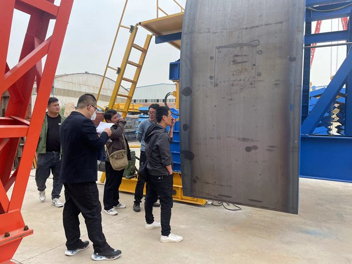 2023年4月13日,中鐵六局集團有限公司沈陽地鐵一號線1標(biāo)項目經(jīng)理部檢查驗收專家組蒞臨我廠,對訂購我廠生產(chǎn)的二襯臺車進行檢查測量驗收。在為期一天的驗收工作中,通過聽取現(xiàn)場匯報,實地測量,調(diào)試、繪圖3D模擬,對我廠的二襯臺車進行了細致的檢查驗收。
